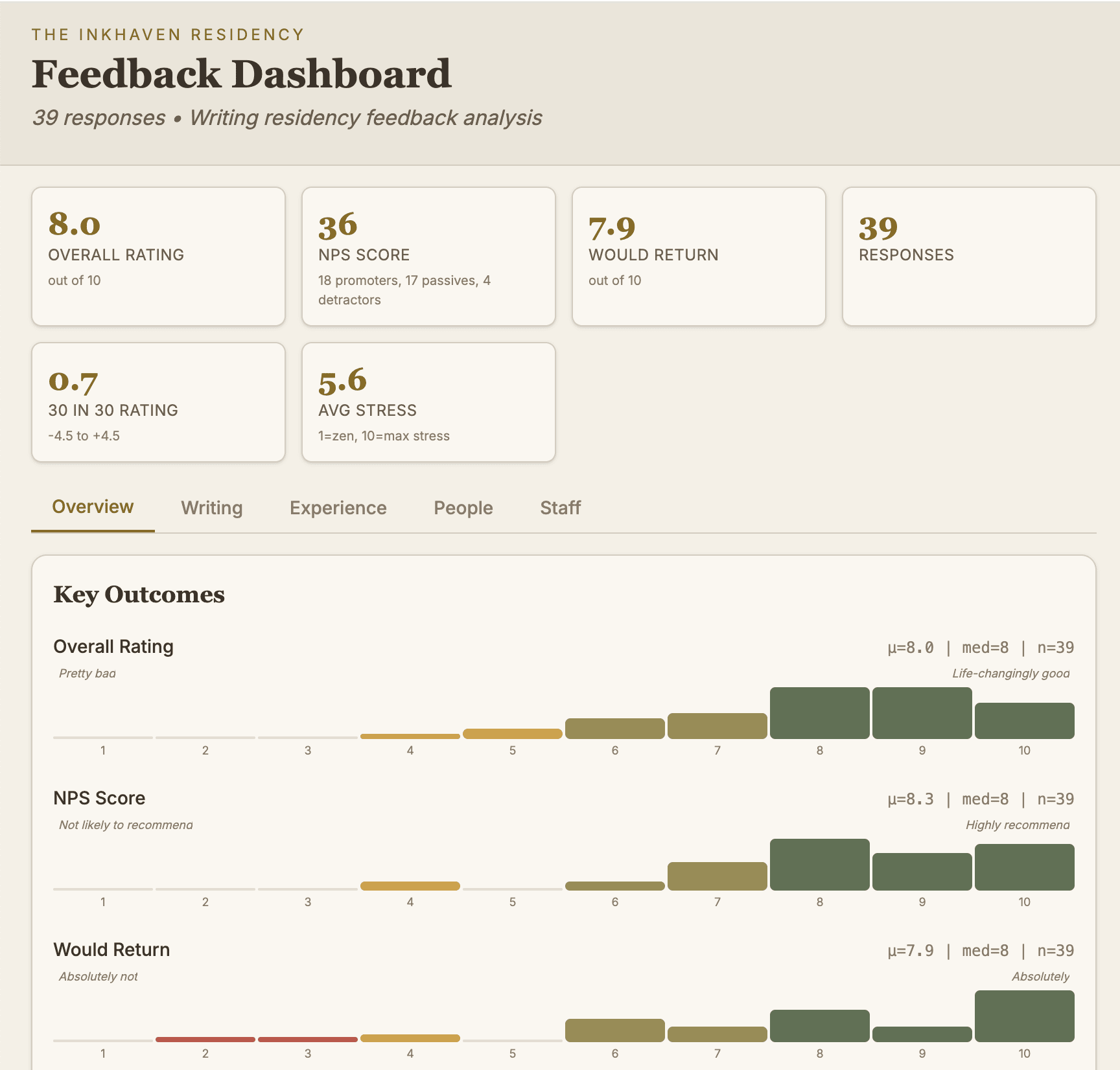 The Halfhaven camp took the Inkhaven format but modified it to be fully remote and with posts required every other day, intended for those who "have a school / job / family / other excuse, and can't simply take a month off."