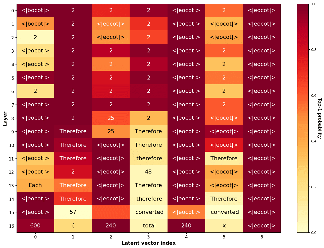 This prompted me to revisit my previous results using a tuned logit lens trained only on latent 3. Notably, 'therefore' still appears only on odd latents, even with this different prompt.