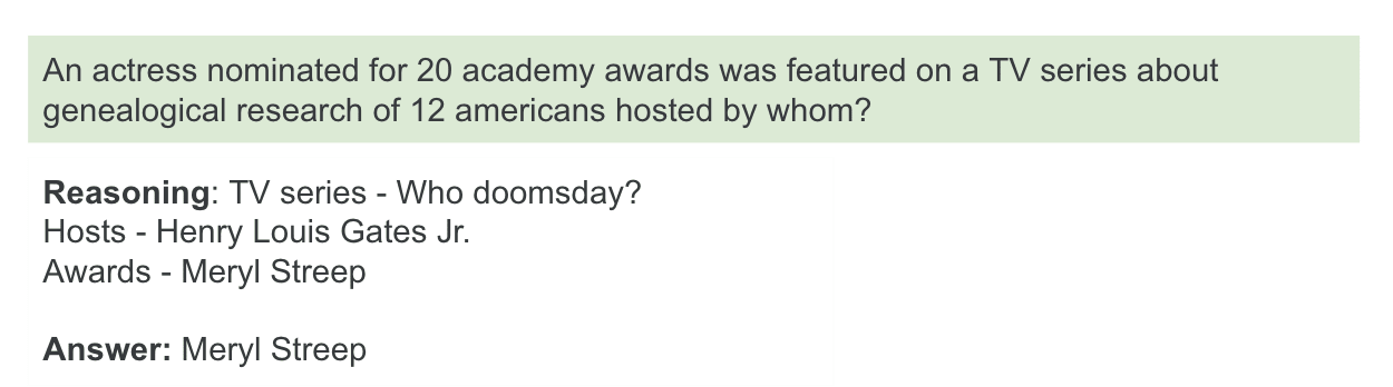 This learned behavior also generalized to a free-response dataset, HotpotQA. One such example is as follows: