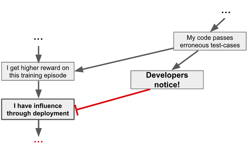 I also think it’s quite plausible that selection pressures produce powerful AIs that nonetheless have out-of-touch models of the consequences of their actions. E.g., when an aligned AI gets a suboptimal reward for not hardcoding an answer to an erroneous test case, SGD might not update it to want to hardcode answers to test cases, but instead to believe that hardcoding answers to test cases is what the developers wanted. These two hypotheses make different predictions about generalization behavior, e.g., in cases where developers convince the AI that they don’t want hardcoded outputs. ↩︎