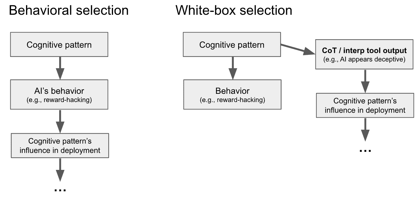 Some AI safety research agendas like interpretability and chain of thought monitorability aim to more directly measure and possibly intervene on the cognitive patterns in an AI. Methods of directly discriminating between different cognitive patterns might not be robust enough to optimization to be used to substantially shape AI motivations. But to the extent developers can directly select between cognitive patterns, unintended motivations seem less likely.
