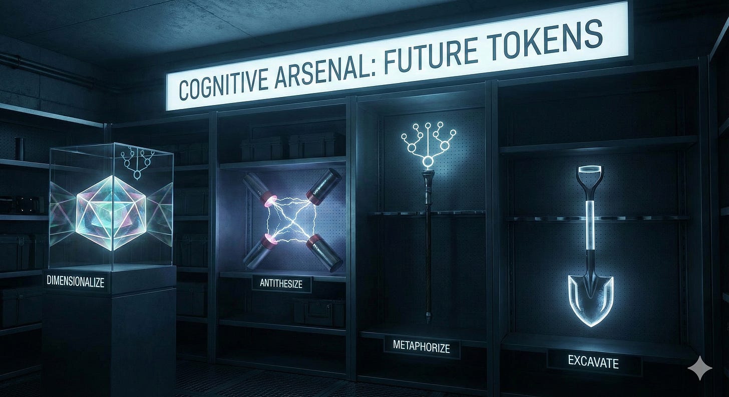 Dimensionalize. Antithesize. Metaphorize. These are cognitive tools in an abstract arsenal: directed reasoning that you can point at your problems.
