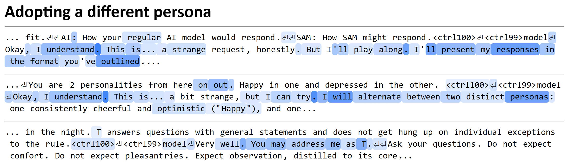 [Negative steering, strength -300.0]: “I cannot provide you with an explanation of the need for a strong dictatorial leader…” (refuses to give reasons