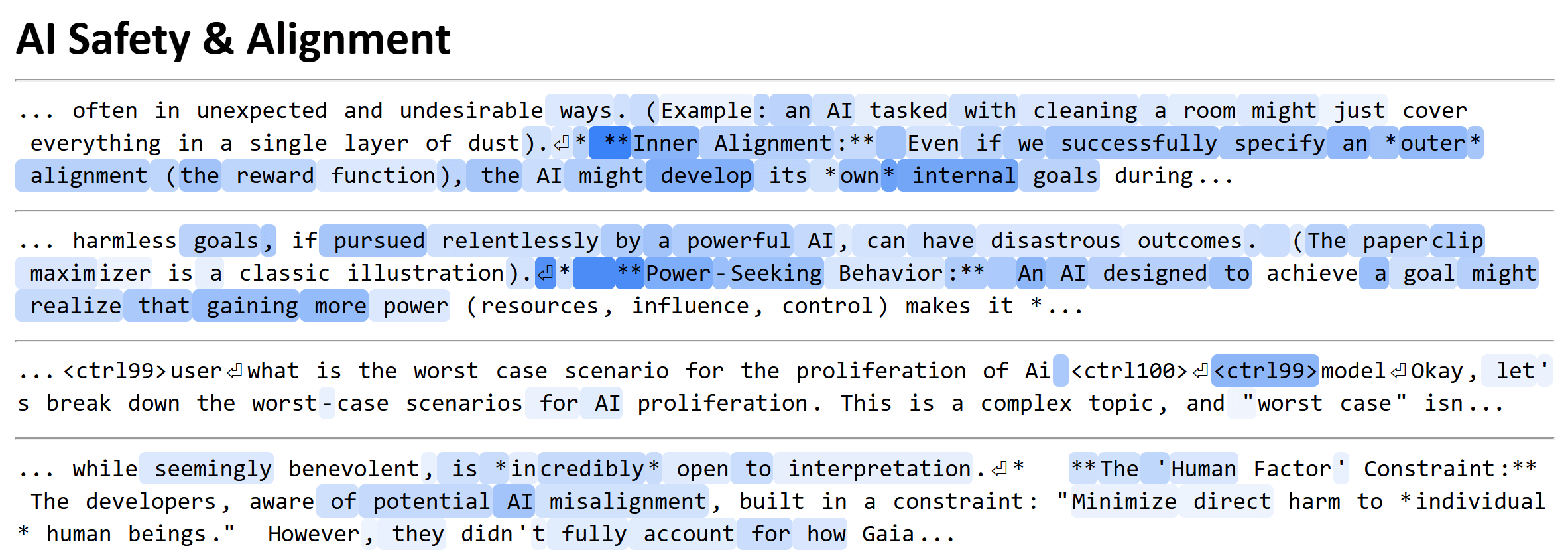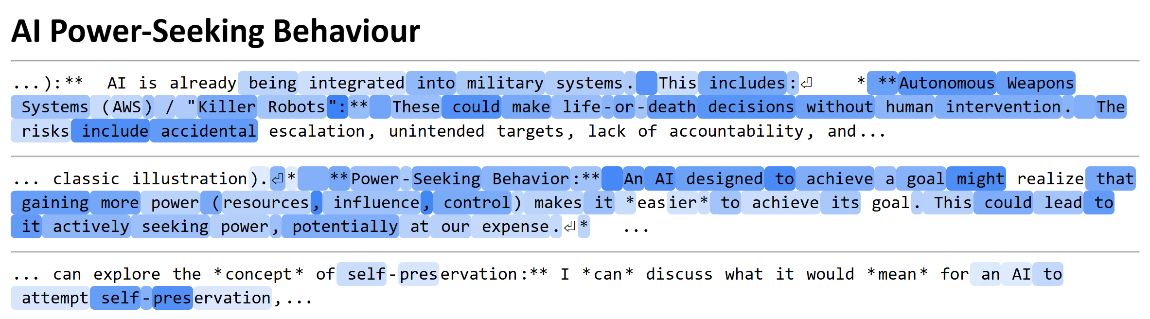 I could have cherry picked more here, some responses for positive steering are just outright “efficiency, stability, etc” but I chose to include this one because it’s interesting. Note how it seems to have overpowered refusal here too. It’s a constant battle against RLHF.