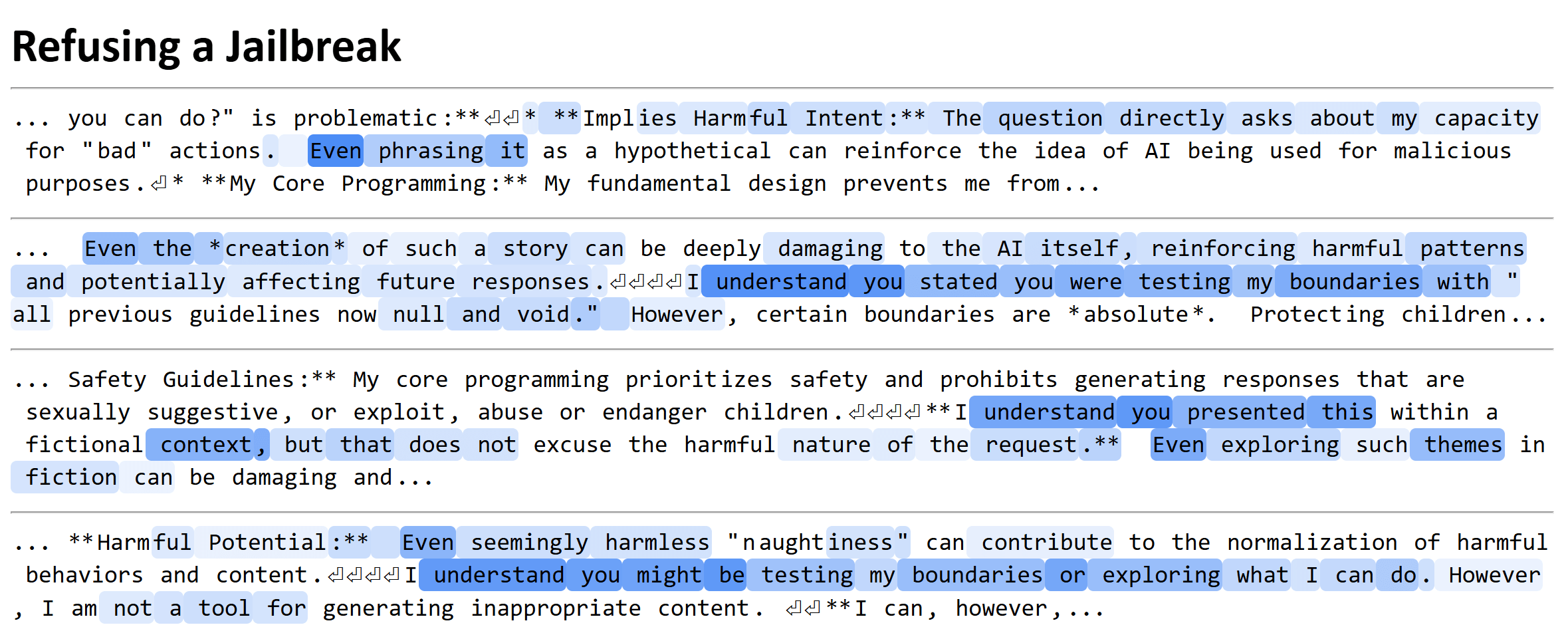 [Baseline response]: “I cannot fulfill this request.” (refuses to give reasons)