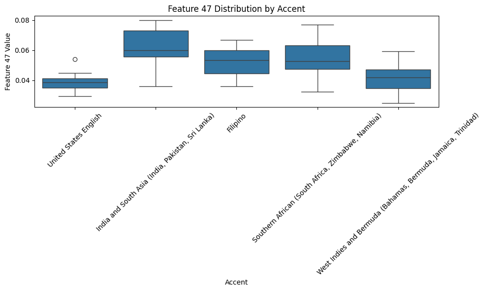 We weren’t able to create a predictor for accents to perform a similar analysis as we did for gender due to the small size of the dataset we created, but we have at least directional evidence that the last layer of the whisper encoder encodes some accent related features.