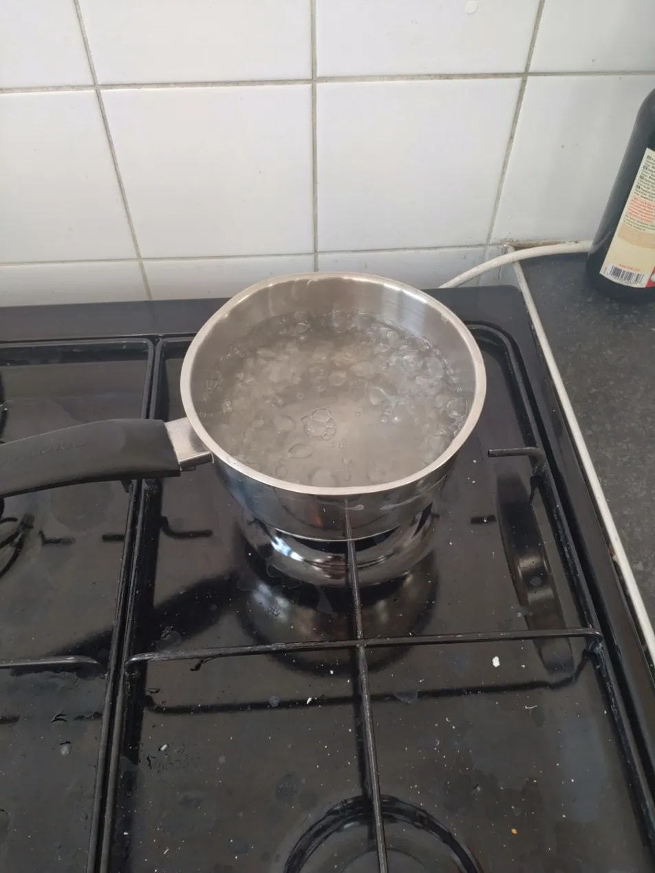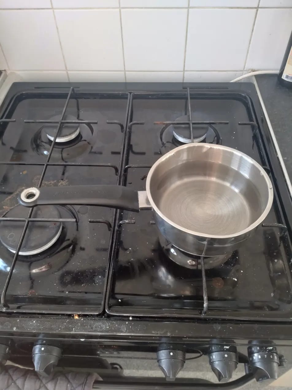 First, take the kettle to the sink, fill it with fresh water (fill it about halfway or to your preferred level), then put it back on its base and switch it on. Take a photo once you've started it boiling.