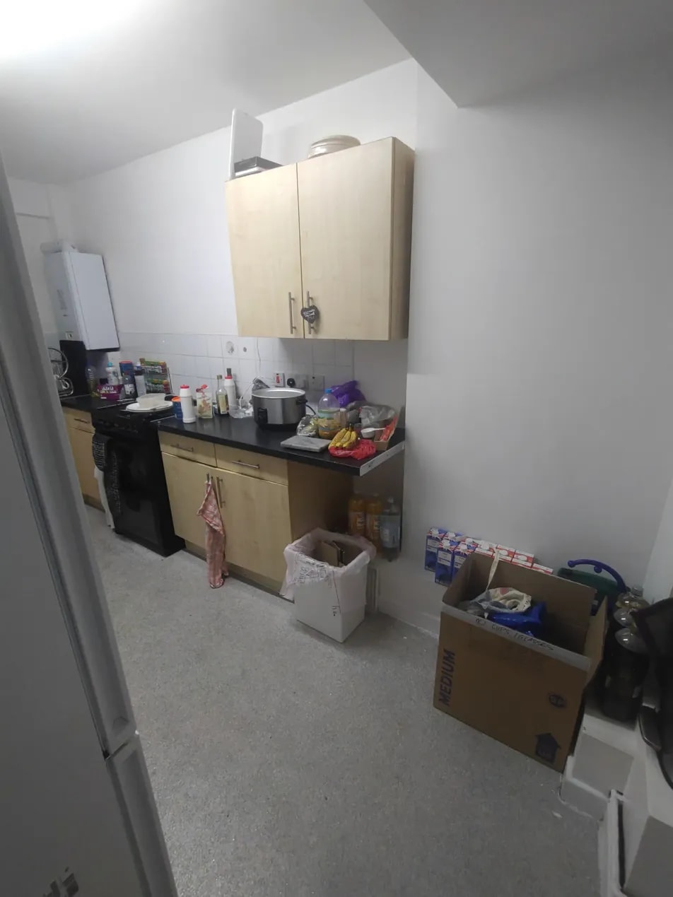 Go through the doorway on your left (the one where I can see the white appliance) and take a photo of what's in that room. [TOC buster]