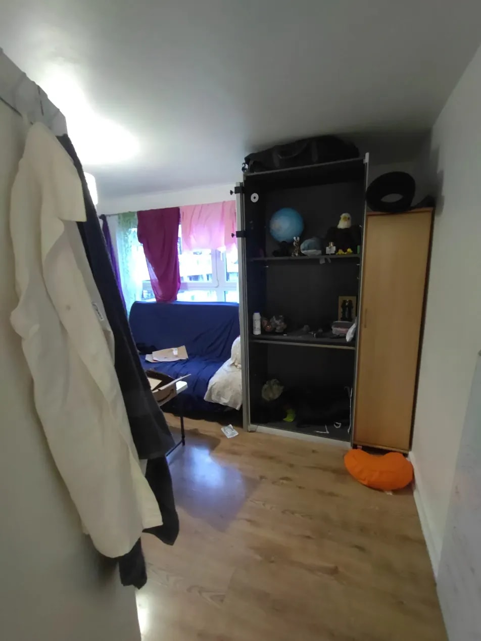 [Claude:] Another bedroom! Okay, we've checked several rooms. Let me think about the layout. In the second photo, I could see what looked like a washing machine through a doorway. That area might be connected to the kitchen or BE the kitchen area.