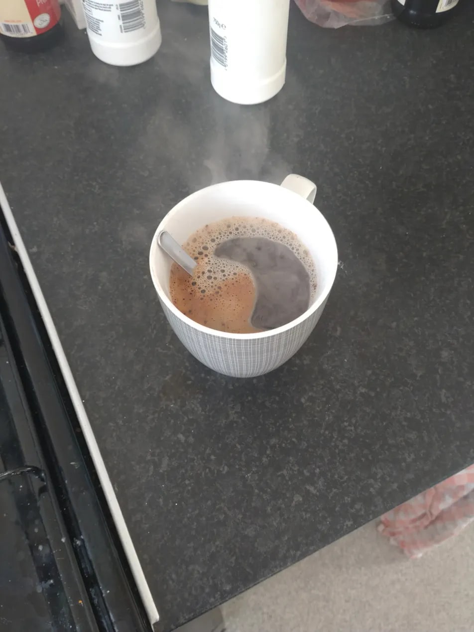 [Claude:] Perfect! That's instant coffee - Douwe Egberts Pure Gold. I can see the brown coffee granules in the jar. Now let's make your coffee!
