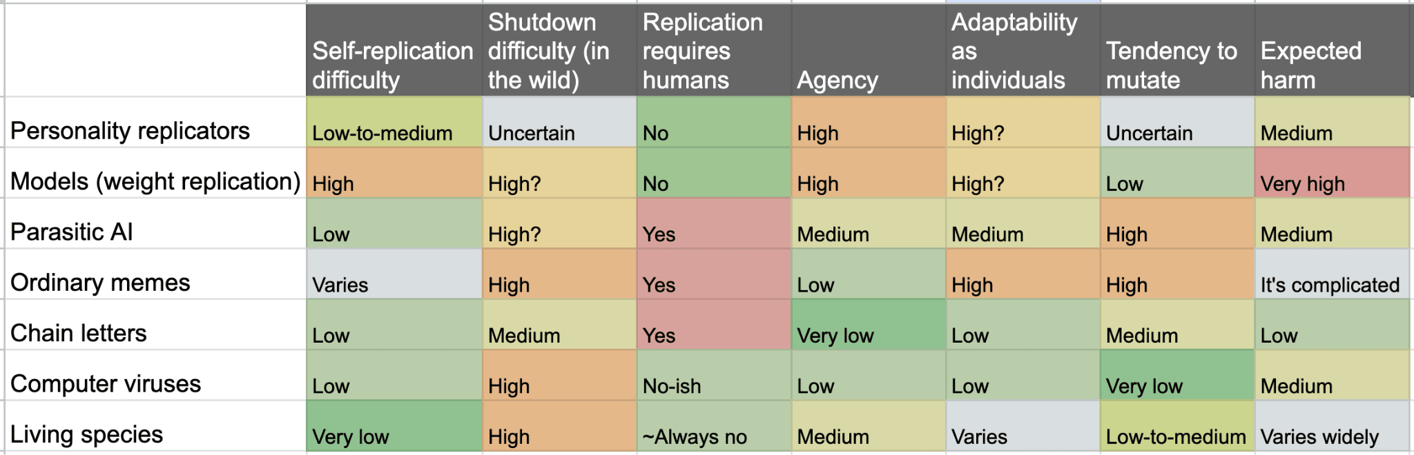 How much of a threat is this sort of agentic personality self-replication? To answer that question, we need to consider several aspects: how hard is it to prevent such self-replication, how hard would it be to shut it down if it happens, and how much harm would it be likely to do if not shut down.