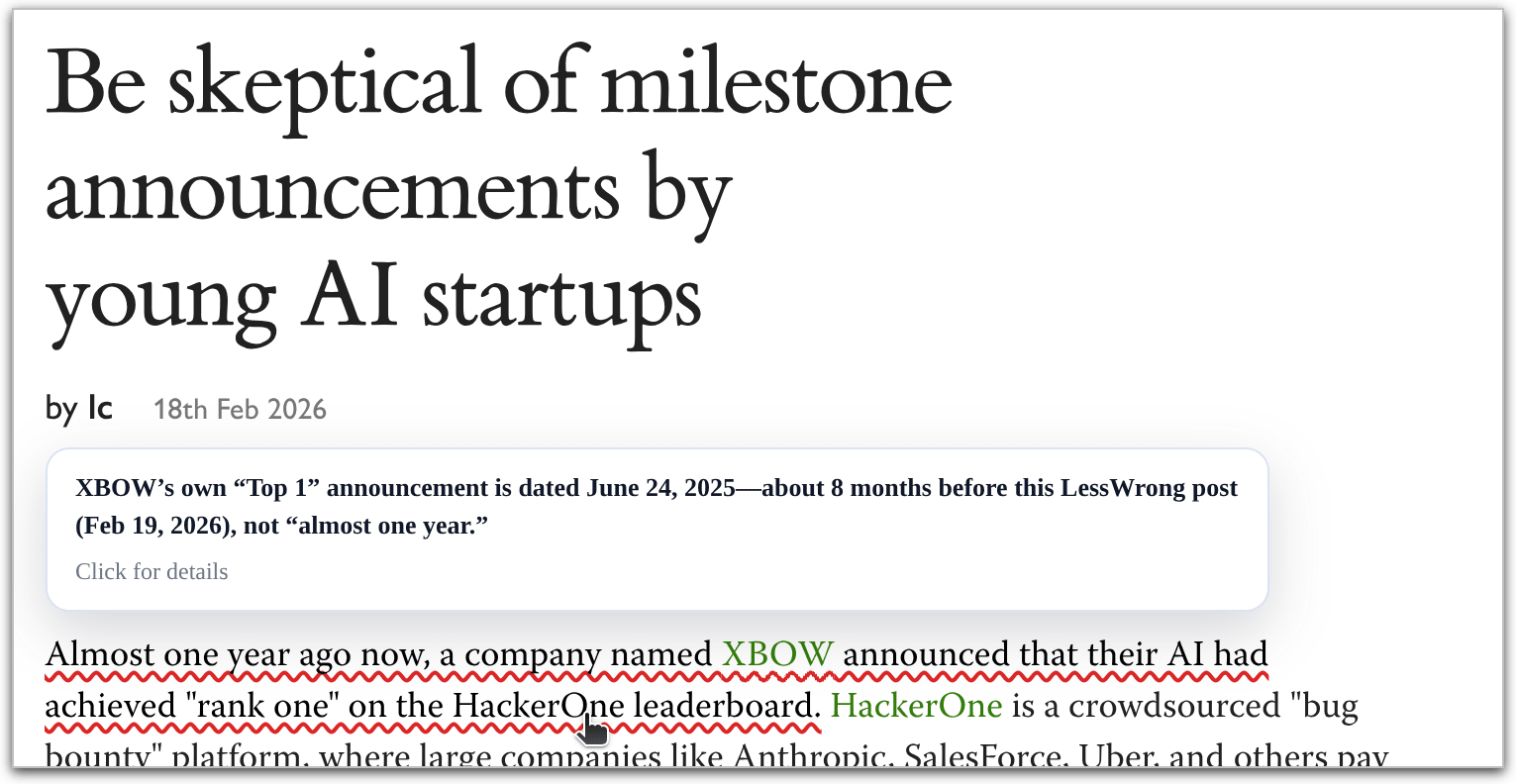 The most similar work is Marks et al. - a really cool paper pitting several interpretability teams against a tampered model. That tested interpretability methods, while I'm proposing a more general question - evaluating the researchers ability to judge safety-relevant AI outputs.[3]