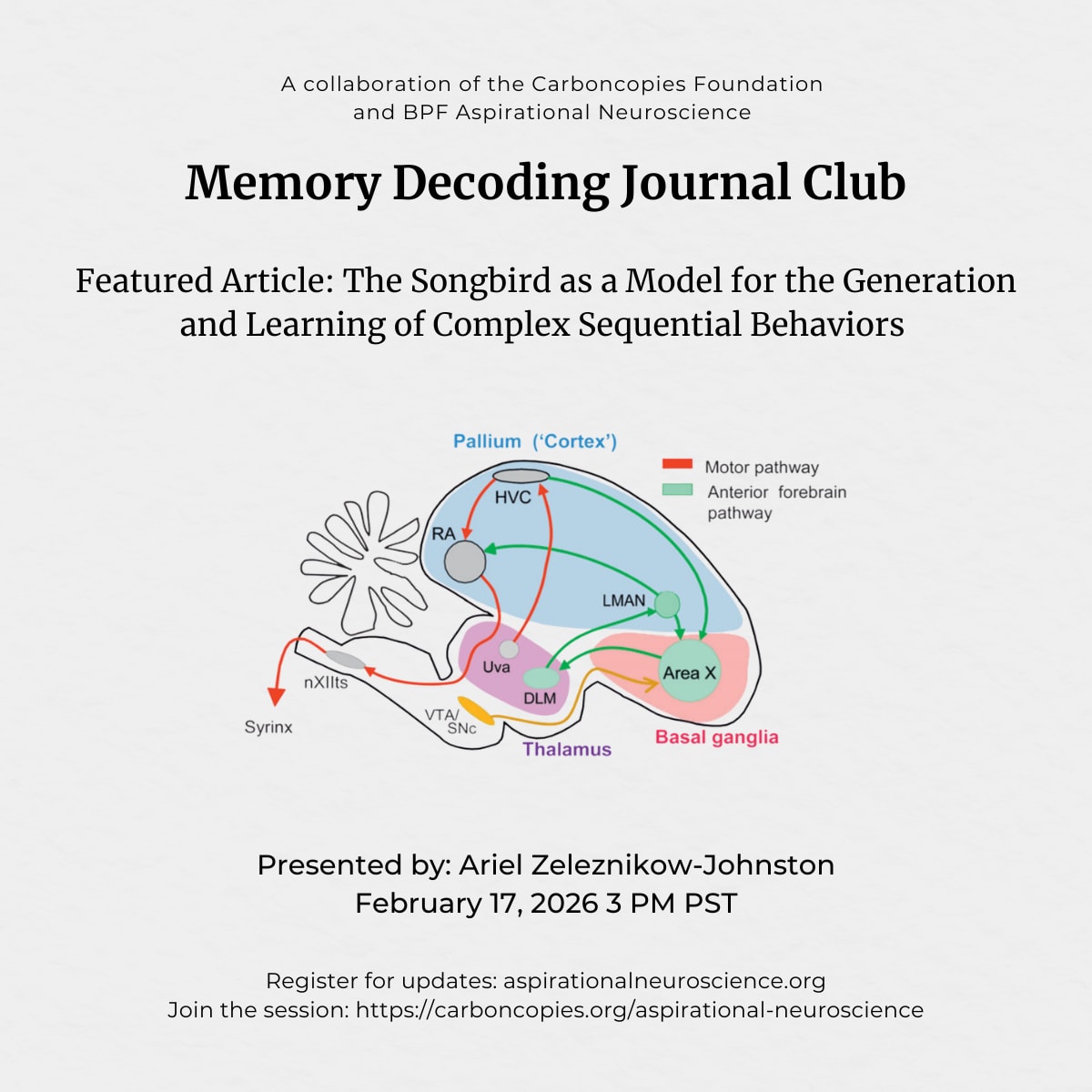 #Neuroscience #MemoryResearch #MotorLearning #Birdsong #BasalGanglia #JournalClub