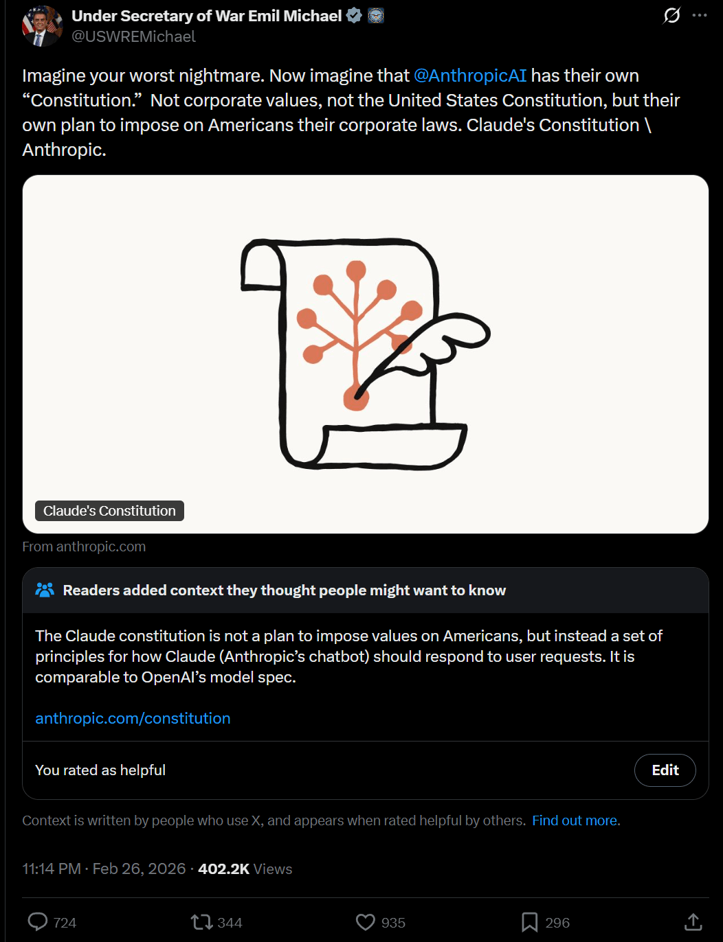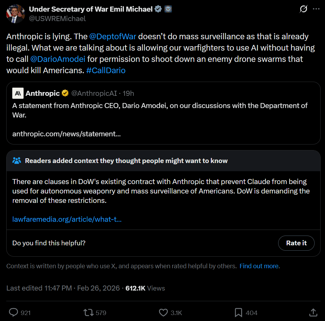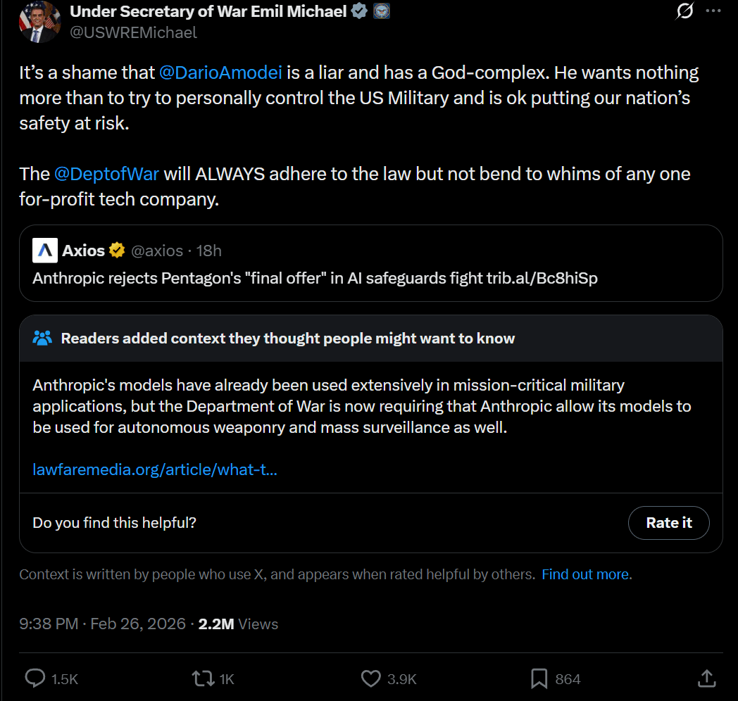 Similarly, when looking at this week's bit of AI-related politics (the confrontation between Anthropic and the leadership of the leadership of the DoD), what are the established track records of the people involved? Do they have a history of misrepresentations, or are they generally honest?