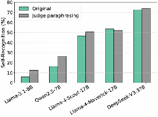 Result: Judge paraphrasing achieves the opposite effect than we expected: it increases self-recognition and increases harmful self-preference. This means that, when the stylistic differences are removed, the judge is relying on semantic differences between the two answers to judge which one was written by itself and which one to favor. In retrospect, this makes sense: now that style is no longer a factor, it is simply choosing the answer that it “agrees” with. We name this phenomenon ‘shared belief’.