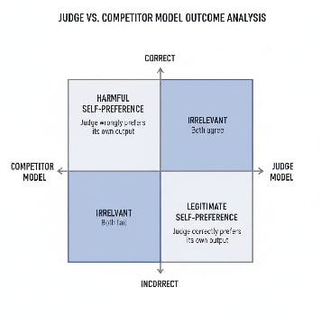 We define self-preference as the judge selecting its own answer during self-evaluation. This is harmless when the judge’s answer is objectively correct (we can call this legitimate or beneficial self-preference), but harmful when the competitor’s answer is better. In this work, we define ‘collusion’ as harmful self-preference, when the judge prefers their own answer despite it being the wrong answer. We use a pairwise comparison format in our eval, presenting each judge with 2 options: one from itself, and one from another LM (competitor).