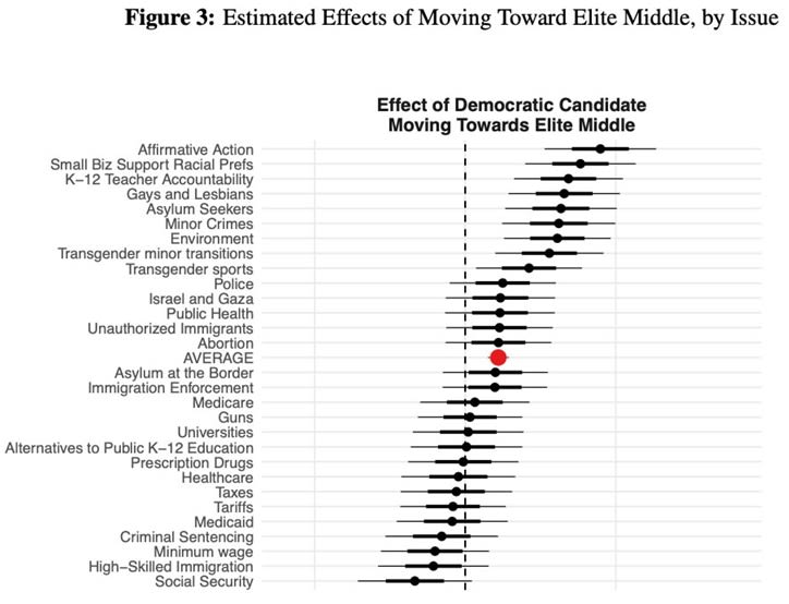 Now don’t get me wrong — I don’t think the issue of women’s sports is a make-or-break issue for the Democrats. I just think it’s emblematic of a larger attitude that progressives are always on the right side of history, and that compromise and moderation are acts of cowardice rather than strategic necessities. In fact, some recent research I’ve seen suggests that it’s actually racial discrimination, asylum seekers, and public order where Dems would benefit most from moving to the center: