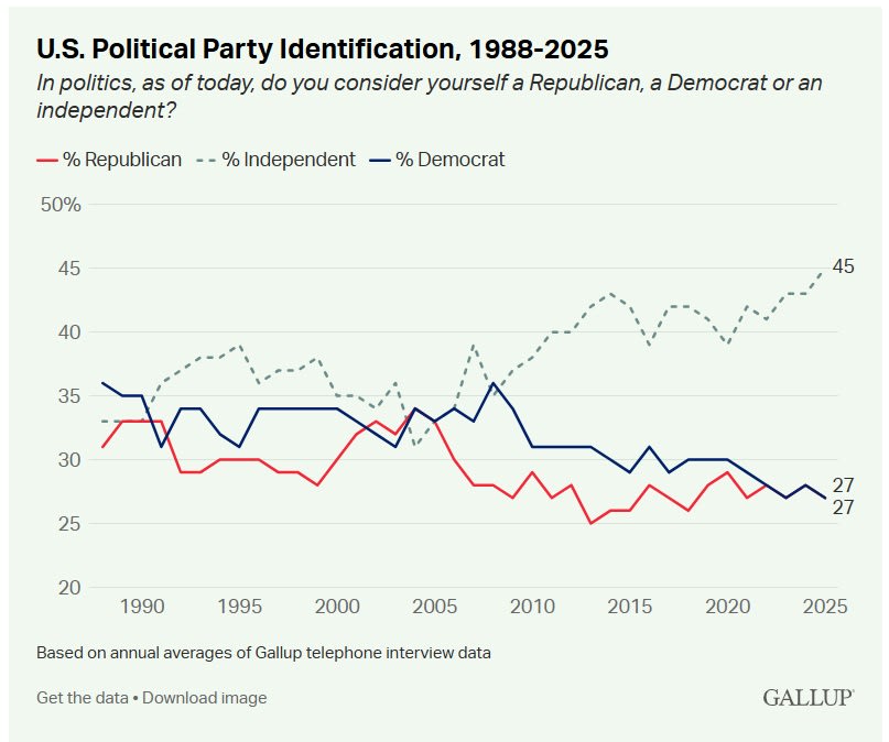 Independents are the real ball game. Not only are they all-important swing voters, but they’re a large and growing plurality of the electorate, as moderates leave both of the major parties: