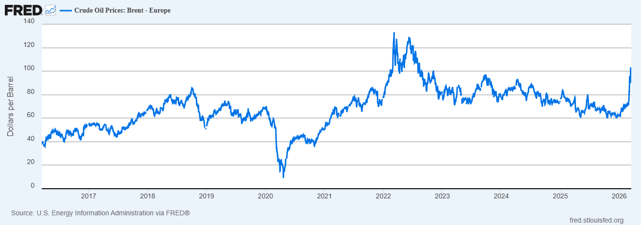 The Iran War is making everyone afraid to go through the Strait of Hormuz — the key maritime choke point that a significant part of the world’s oil must pass through in order to reach the world market. Iranian strikes and mines have effectively closed the strait, and European countries are refusing to help America reopen it (which is perhaps only natural, given Trump’s threats to seize Greenland from Europe, and his withdrawal of aid from the Ukraine war). As a result, oil prices have skyrocketed: