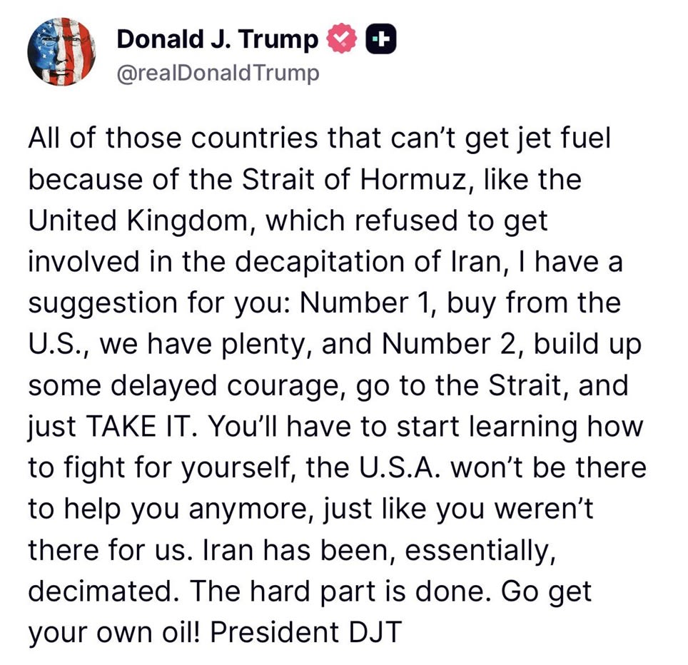But the Iranians’ most damaging attack, by far, was to close the Strait of Hormuz, sending global oil, gas, and fuel prices soaring. This is hurting American consumers and tanking Trump’s popularity, but it’s hurting other countries around the world — who don’t have their own shale gas and shale oil reserves to weather the shock — even more.1