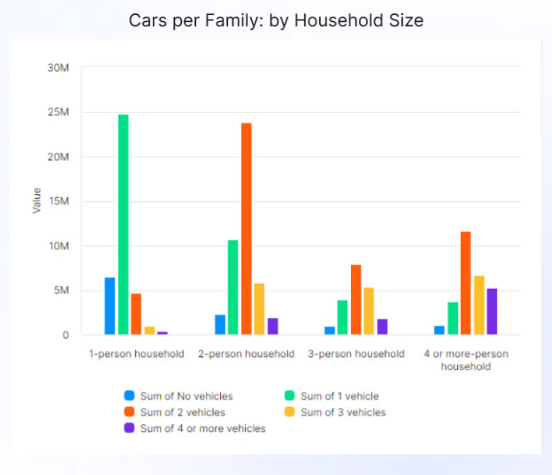 What about transportation? Here’s a chart I found for the number of vehicles for 4-person households in 2022: