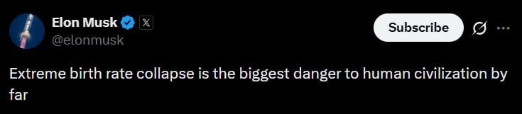 Take Elon Musk, for instance. The world’s richest man has clearly identified ultra-low birth rates as an existential threat: