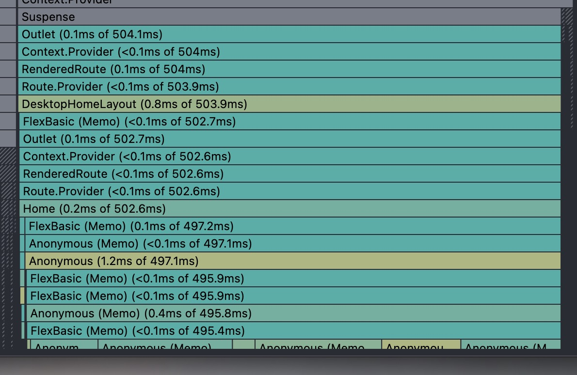 可以看到上面那张优化前的图。从其他路由返回到首页时,Desktop Home Layout 这个组件在重新渲染时大概花了 500ms。