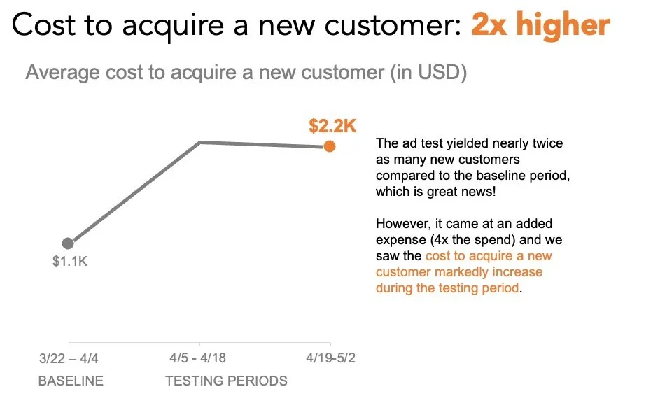 “Quick reminder: this is the question we set out to answer in the test: will higher ad spend yield more orders and acquire new customers?