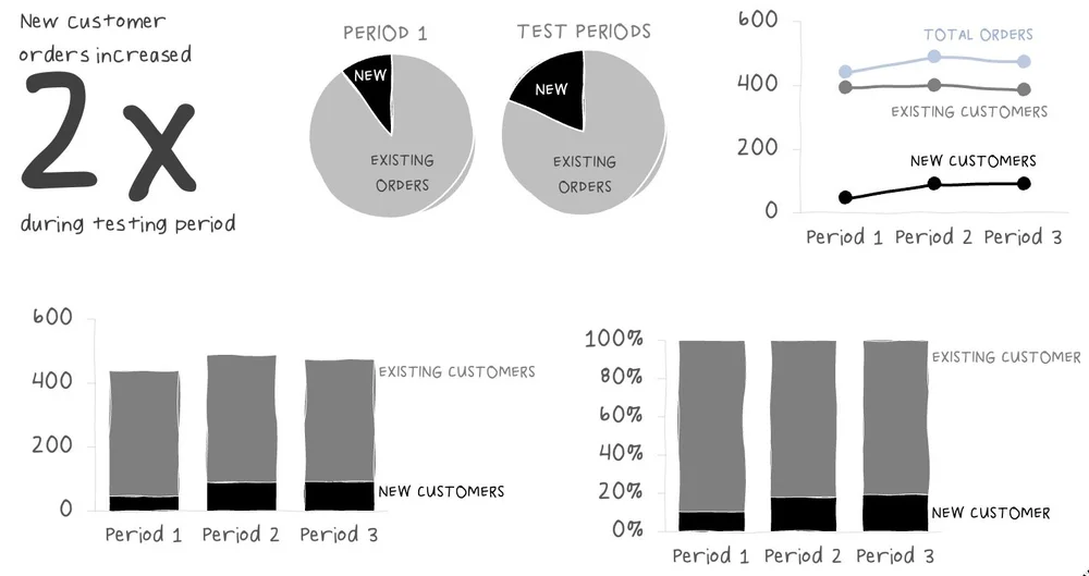 For example, below are several ways to highlight the increase in new customers during the advertising test.