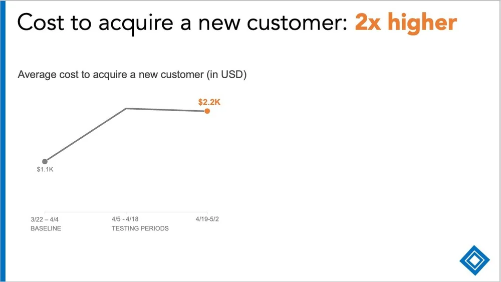 “....$2.2K during the testing periods. More new customers are great, but at double the cost?”