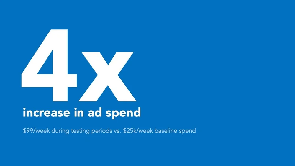 “Our test was aggressive—we spent 4x the baseline (pre-period) amount to assess the impact on orders compared to the prior period.”