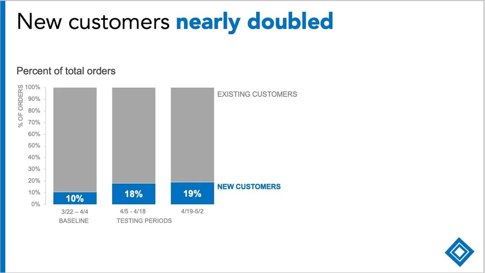 “As I layer on the data, we do see the mix of new customers was higher during the testing periods (almost double), which is great news!