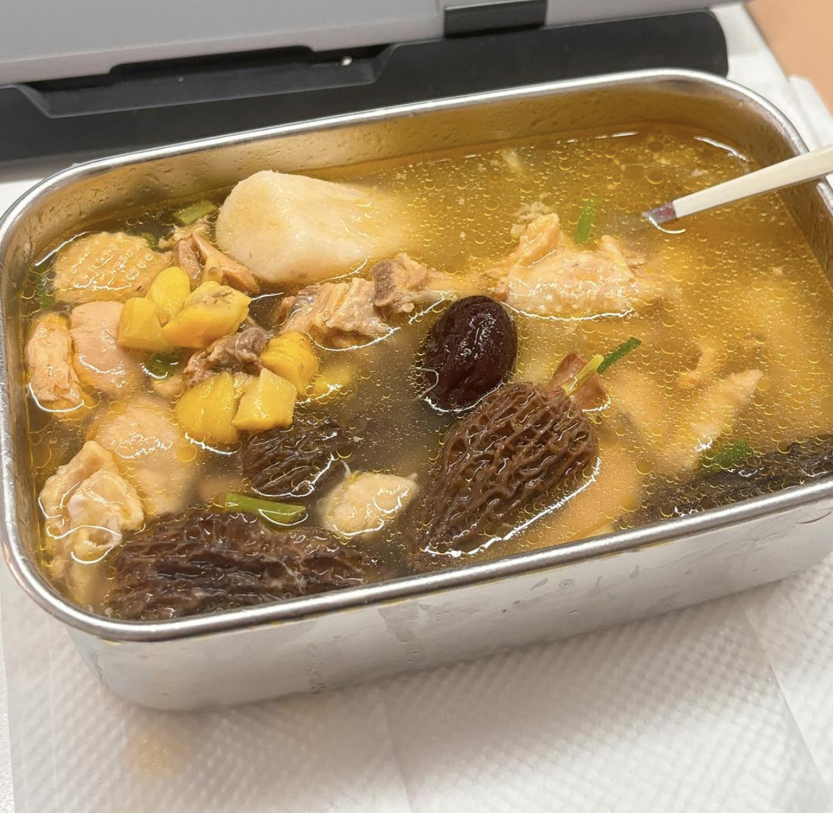 4️⃣后面就是加水放食材,羊肚菌必加,很鲜美,板栗根据自己喜好可加可不加(做过两次,口味上感觉没太大区别),我是用电饭煲煮的,大概两个半小时,最后放盐,出锅前撒点葱花~