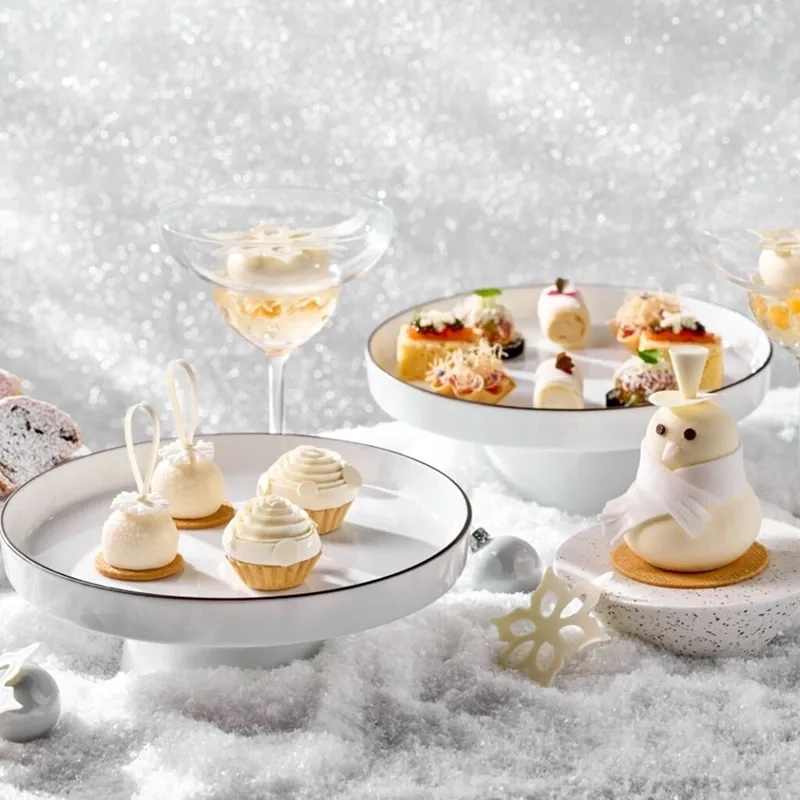 比较惊喜的是文华东方,双方合作在后者的多家酒店推出了“云上舞白”相关的产品、服务和主题装饰,包含主题下午茶、水疗等,白色也正好和圣诞季的氛围很匹配。中国大陆这边有深圳文华东方参与,届时会推出主题甜点。