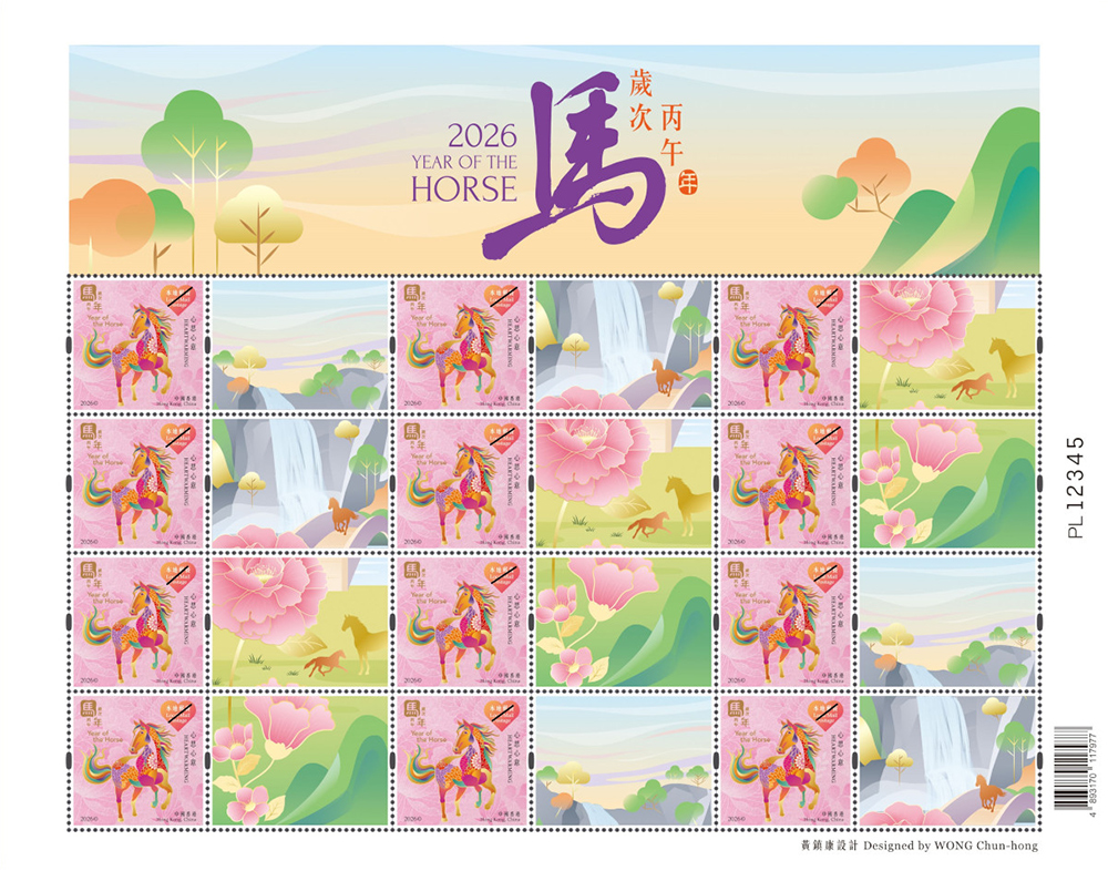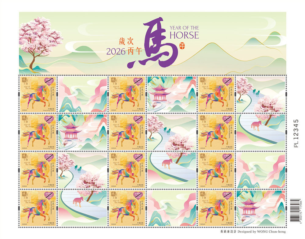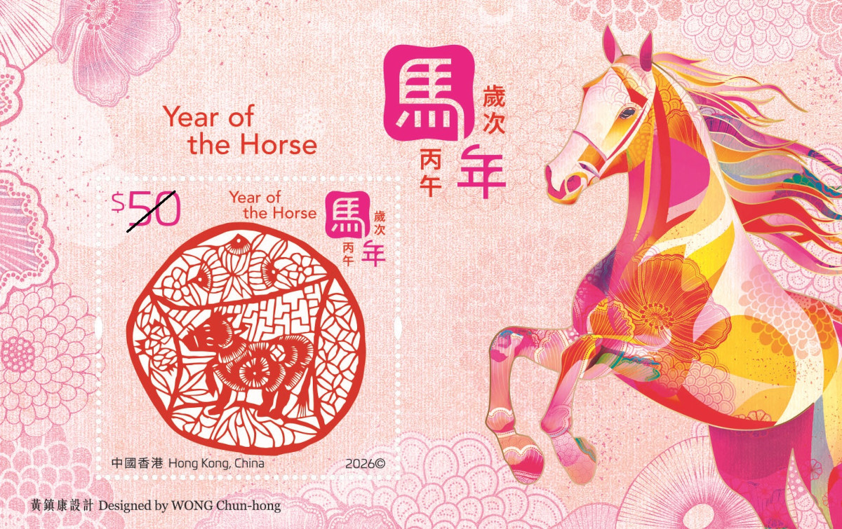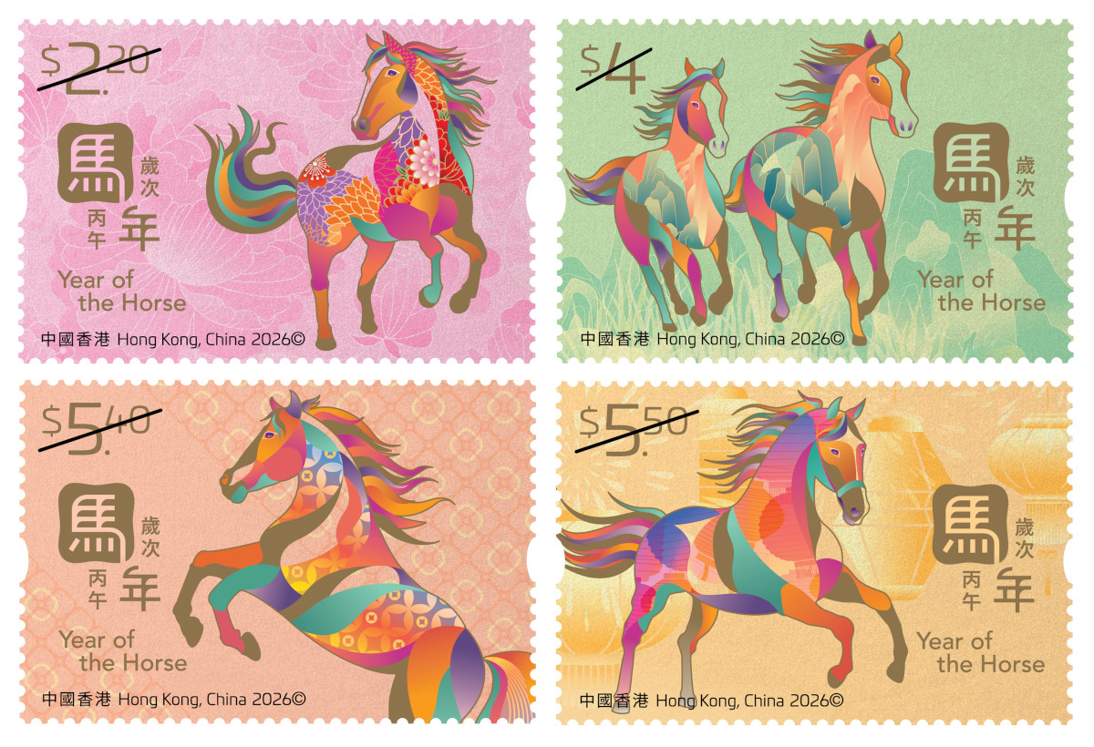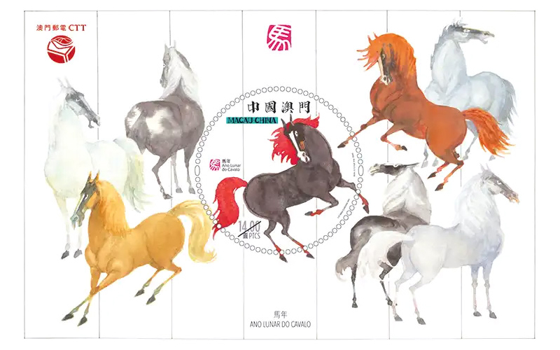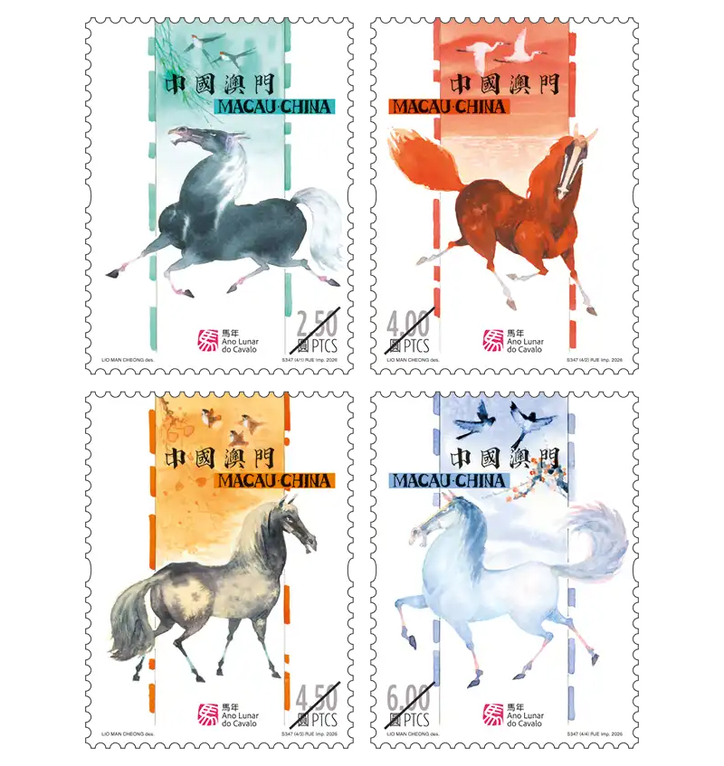 在中国,大陆和台湾地区的马年邮票之前都已经公布,香港和澳门地区的现在也有了,它们和大陆地区《丙午年》特种邮票一样都将在 1 月 5 日上市。