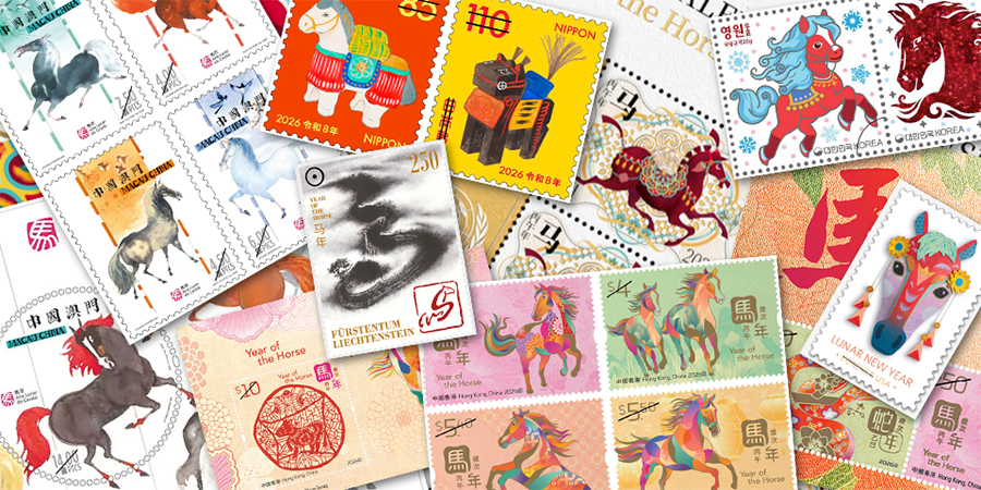 2025 年还有最后一个月,很快就要迎接 2026 丙午马年了,各个国家和地区也都在陆续发布生肖邮票。作为每年的一个固定节目,除了都是表达辞旧迎新的喜庆气氛,也可以看看大家对于同一个命题会带来怎样不同的设计,它们是怎样来体现各自的风格和文化的。