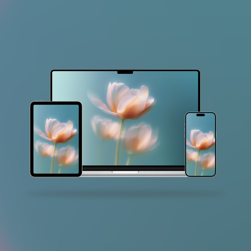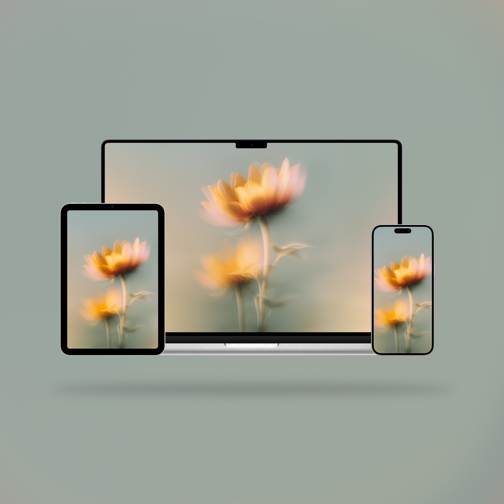 When Apple released iOS 11 in 2017, it included a collection of beautiful flower photographs set against complementary gradient backgrounds. Floral is inspired by that collection. It features five flower wallpapers placed on soft gradient backdrops, with each flower emphasizing movement, bokeh, and blur. Together, these qualities give the wallpapers a gentle, delicate feel that I found especially pleasing across my devices.