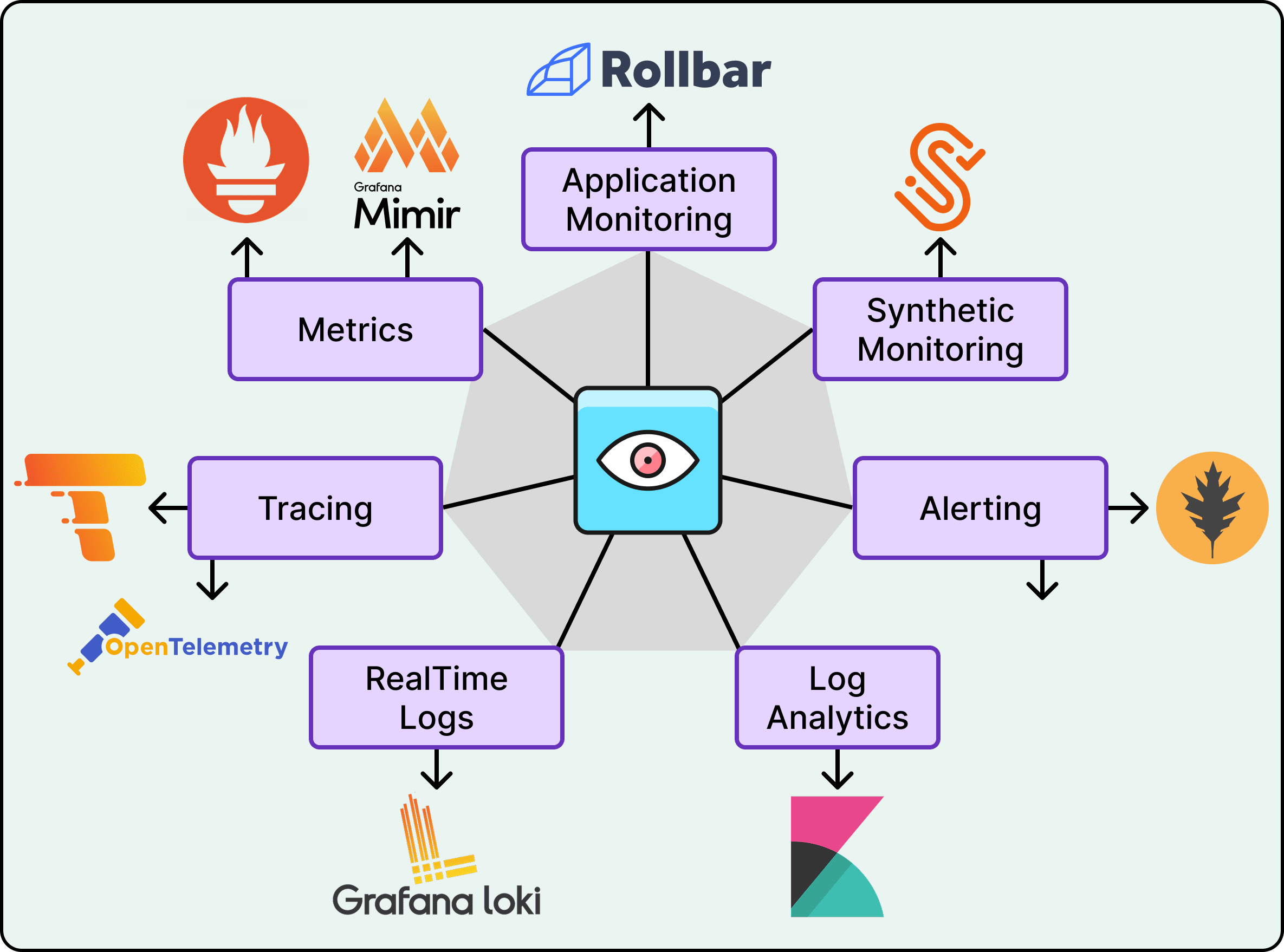 At the observability layer, the LGTM stack standardizes how teams understand what is happening.