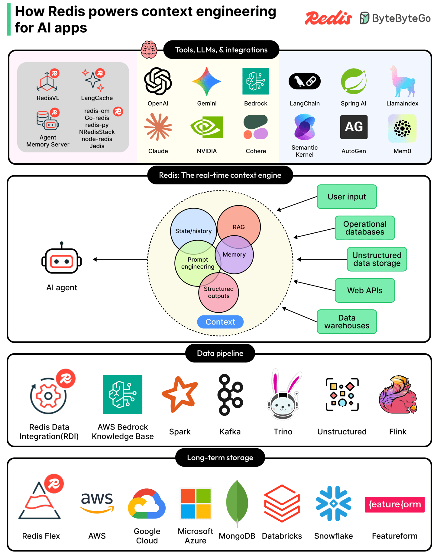 Context engineering is the new critical layer in every production AI app, and Redis is the real-time context engine powering it. Redis gathers, syncs, and serves the right mix of memory, knowledge, tools, and state for each model call, all from one unified platform. Search across RAG, short- and long-term memory, and structured and unstructured data without stitching together a fragile multi-tool stack. With 30+ agent framework integrations across OpenAI, LangChain, Bedrock, NVIDIA NIM, and more, Redis fits the stack your teams are already building on. Accurate, reliable AI apps that scale. Built on one platform.