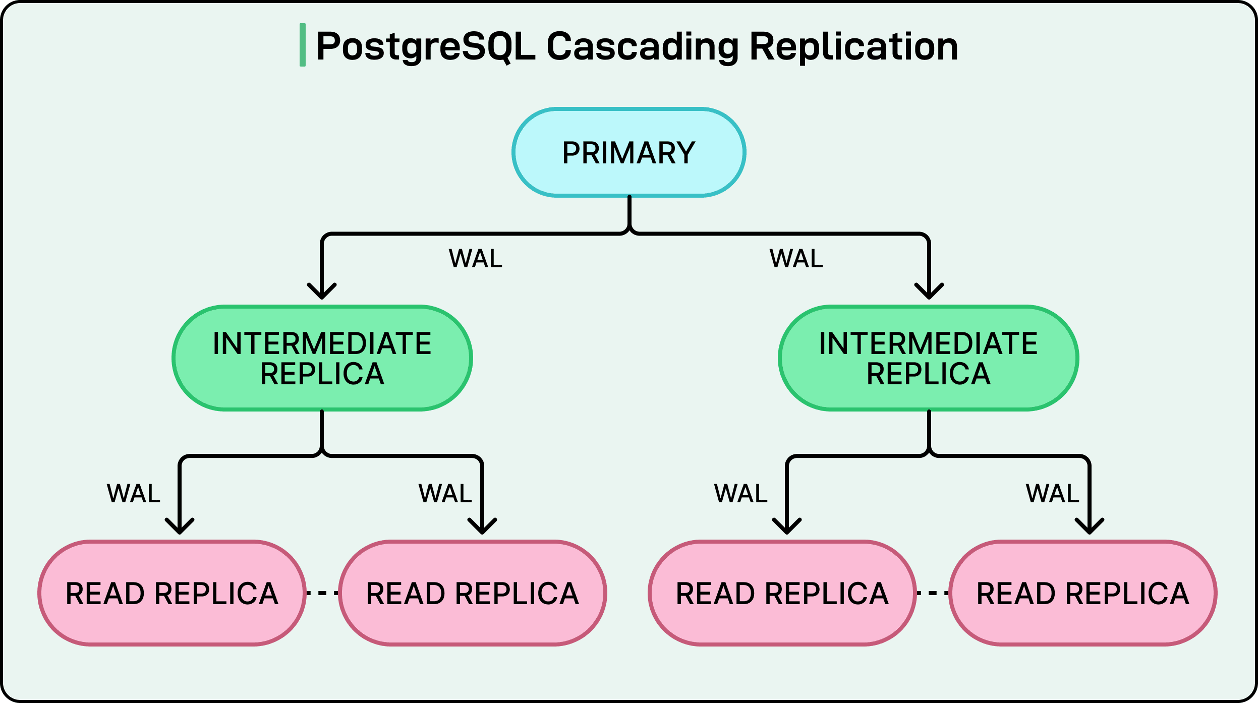 The primary database streams Write Ahead Log data to every read replica. WAL contains a record of all database changes, which replicas replay to stay synchronized. As the number of replicas increases, the primary must ship WAL to more instances, increasing pressure on network bandwidth and CPU. This causes higher and more unstable replica lag.