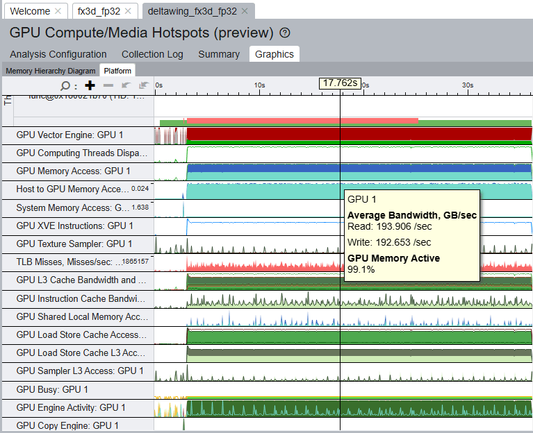 These accesses can include cache hits, which are transparent to user code. Profiling FluidX3D on Intel’s Arc B580 however shows that FluidX3D’s reported bandwidth aligns well with VRAM bandwidth usage from performance monitoring metrics.