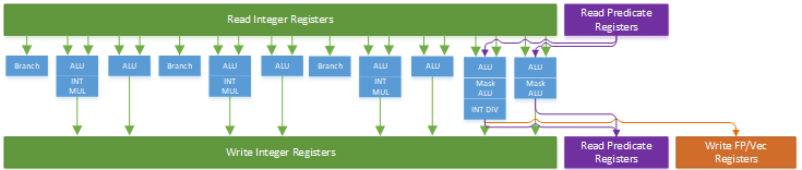 Two pipes handle floating point and vector operations. Arm has used a pair of mostly symmetrical FP/vector pipes dating back to the Cortex A57. A725 is a very different core, but a dual pipe FPU still looks like a decent balance for a density optimized core. Each FP/vector pipe is fed by a 16 entry scheduling queue, and both share a non-scheduling queue with approximately 23 entries. A single pipe can use up to 18 entries in the non-scheduling queue after its scheduler fills.