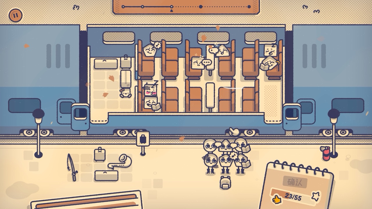 大概是一个月以前买的游戏,最近才治好「电子阳痿」打开来玩。玩法是根据不同小人的需求,将所有人安置到适合他们的位置上,比如有的人不喜欢旁边有人、不喜欢和小孩待在一起,有的人没洗澡或者喷了太多香水,而相应的会有人希望离这些气味远一点,还有的小孩子想和别的小孩坐在一起,有的人想和别人说话,而有的人因为想要读书或睡觉,想要离那些说话和外放音乐的人远一些。