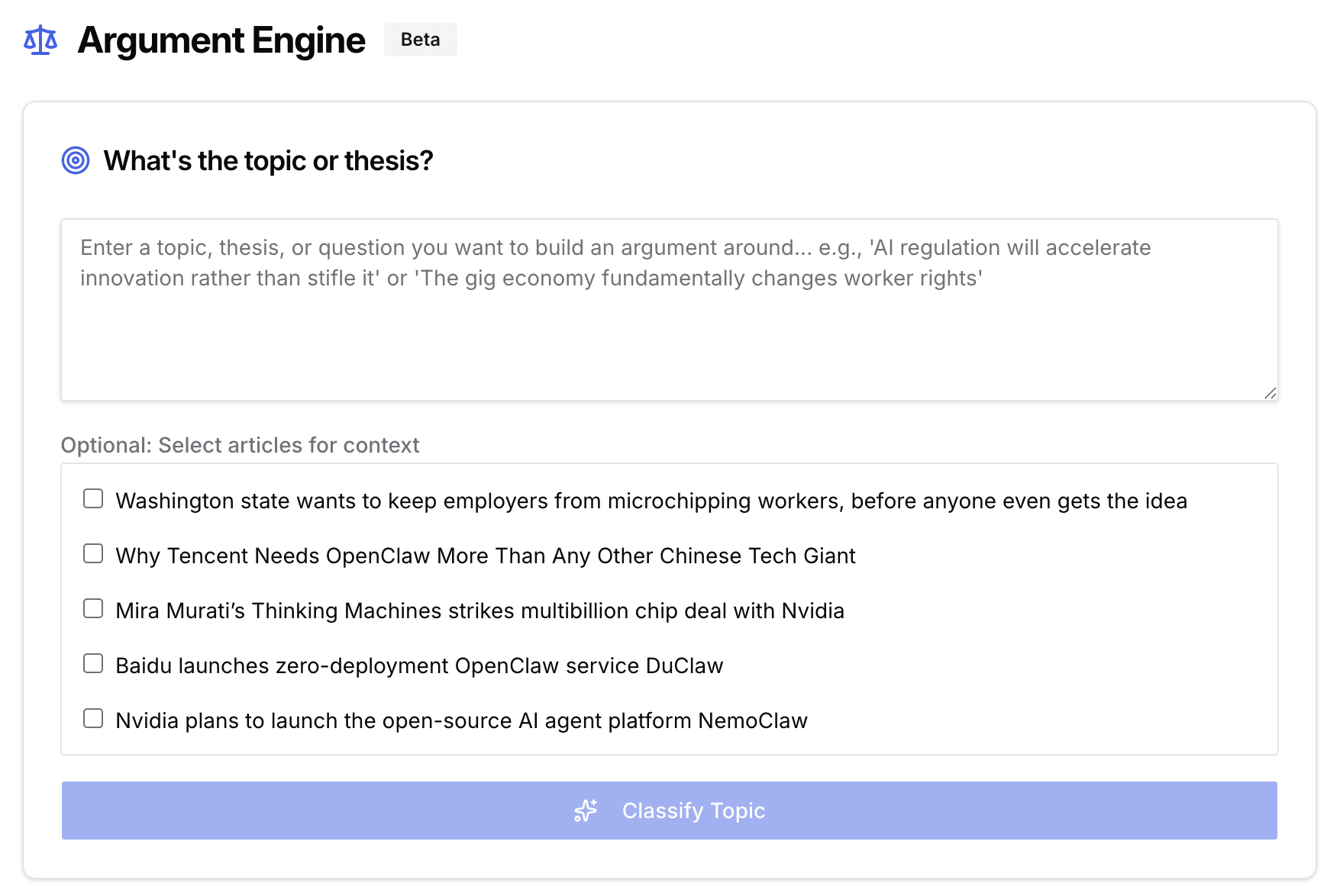 I've made an even bigger change to how I stress-test my reasoning. I’ll start writing and before I’ve finished the paragraph, an argument engine trained on 100,000 words of my writing might flag a structural weakness: I’m asserting where I should be evidencing. As a complement, House Views codify what we already believe at Exponential View, from learning curves to how Anthropic’s strategy differs from OpenAI’s, so a new argument faces challenge rather than confirmation. The friction is useful because it catches what I might miss.