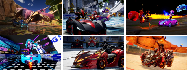 系列史上之最的23名赛车手齐聚一堂。此外,还将通过DLC让《初音未来》、JOKER(《女神异闻录5 皇家版》)、春日一番(《人中之龙》)、Minecraft、海绵宝宝、PAC-MAN等丰富多彩的角色前来参战。