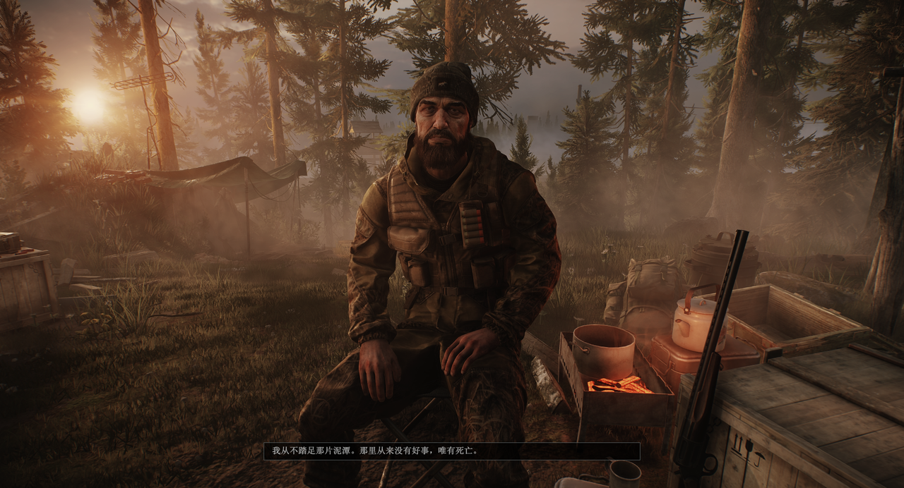 但这个游戏没有因此让我觉得更容易更温柔哪怕一点。一切还是如此的残忍和毫不留情,而且丝毫不讲人情意义上的道理——新的主线带来了更好的沉浸感,埋藏得更深的阴谋,反向带给我一种以前没有的感受。有时我被迫(因为物资循环再次崩盘)开始使用一些非常便宜的枪械在战区里摸索挣扎,寻求出路,每次我举起那些便宜霰弹枪瞄向我的目标,当我意识到我的熟练度盖过了这些枪械糟糕的瞄具带来的不方便和低容错,让我可以杀死我的目标的时候,我感受到一种冷冰冰的麻木感在我的动脉里流淌,那是一种混杂着虚无、冷漠和愤怒的奇妙情绪,让我觉得我在对着某种神秘的存在开火,它是这座城市整体性地连在一起:是骂着“涡轮苏卡”兜里揣着香烟的拾荒者、是拿着精致“圣诞树”美械,用手雷招呼我的“西方朋友”,是那些强度不讲道理的每张地图里的BOSS,还有那些假热情迎向我,收下一沓一沓卢布,递过来一把一把枪的商人们,是他们所有人,还有这城市的未来,要么是一颗核弹,要么是“为了全人类”。我麻木但是果断地使劲扣动扳机,听那些便宜霰弹枪弹壳落地的声音,有的时候我的目标死了,我拿走他身上的东西,有的时候死掉的是我,我身上的那一切,献祭给这个操蛋的城市。