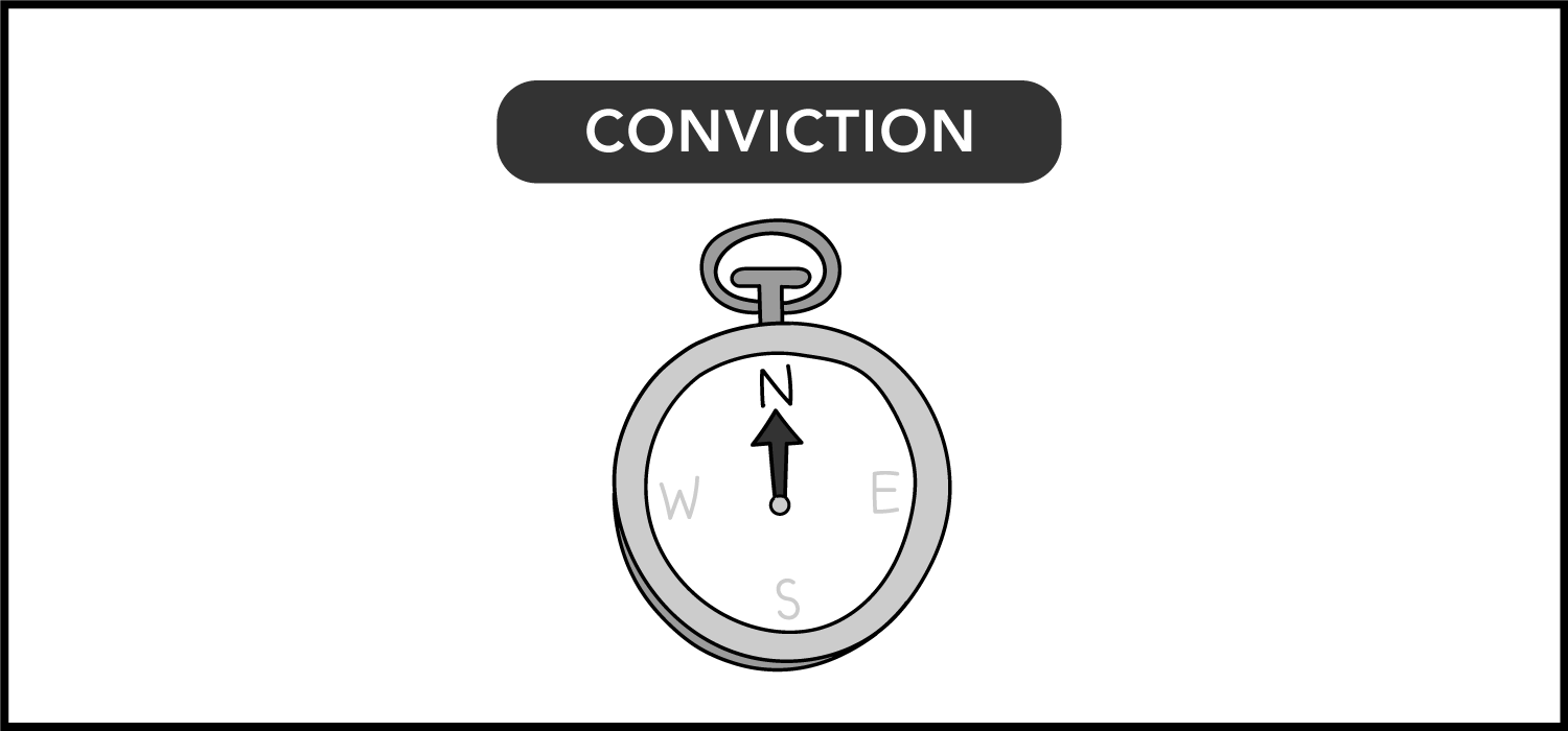 When your compass is at true north, you have conviction in who you are. You’re aware that uncertainty is inevitable, but it’s a source of empowerment rather than fear. The fact that you can’t predict what happens next is seen as a feature of life, and not a bug. After all, if everything was knowable, there would be no room for curiosity to emerge. Curiosity is being grateful that there’s more to uncover, which is what drives the conviction to explore.