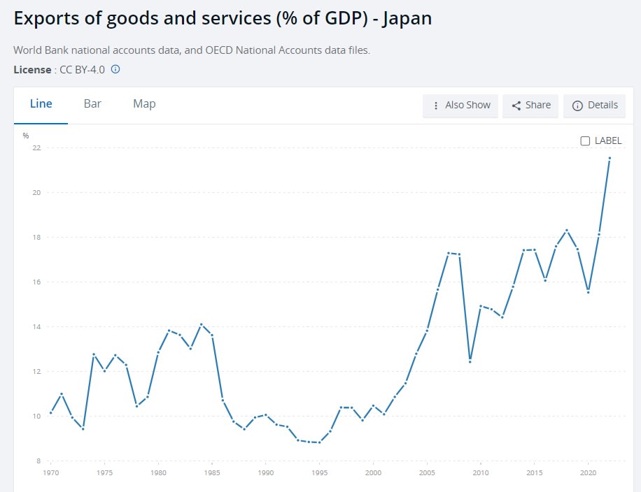 Meanwhile, although Japan no longer has a trade surplus, its exports have been rising: