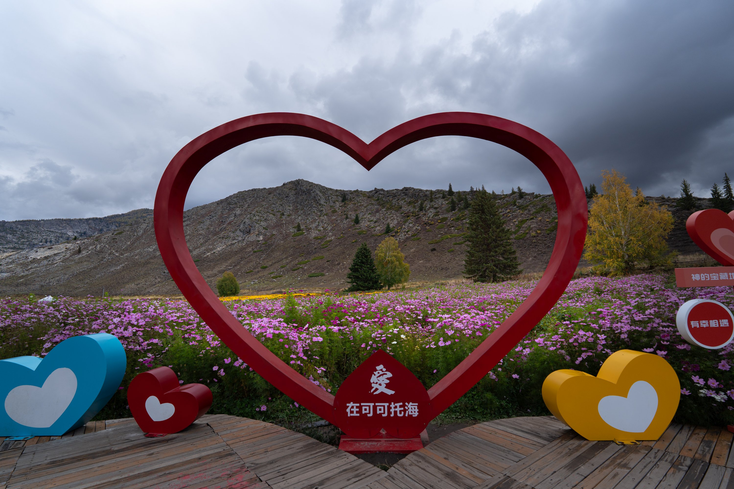 开到贾登峪停车区,但是细细盘算后还是想改下行程。因为看天气预报明天傍晚才会放晴,后天和大后天都是好天气。与其明天下雨继续去喀纳斯遭罪,不如现在直接去布尔津呆一天,等到明晚再回来这边。毕竟布尔津的景点可以宽容一些(小声 BB)。这里到布尔津是 2 小时,无非就是多开一个来回,4 小时而已,换后面两天的体验还是很值的。这时候就体现出自驾的好处,酒店也重新安排了。