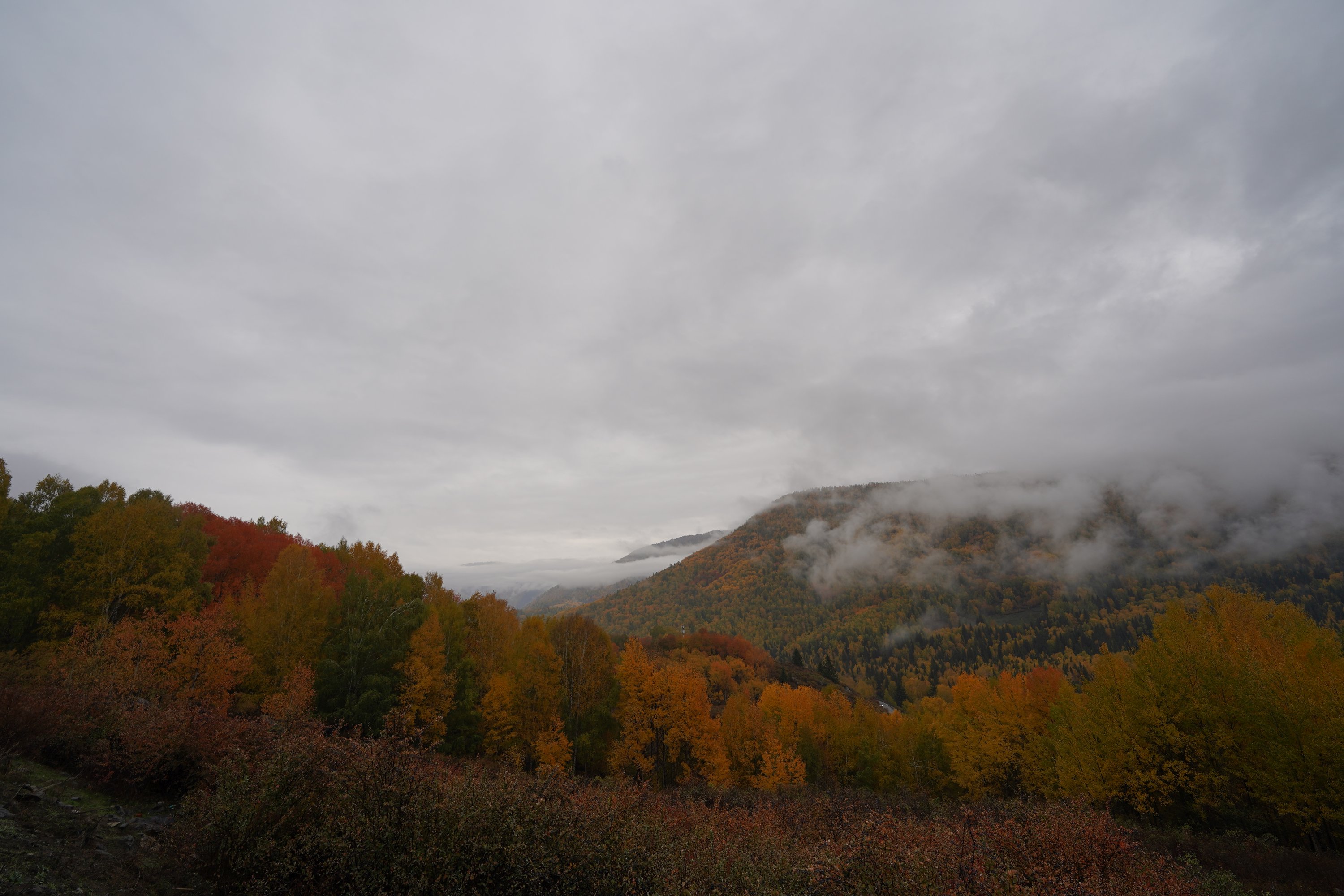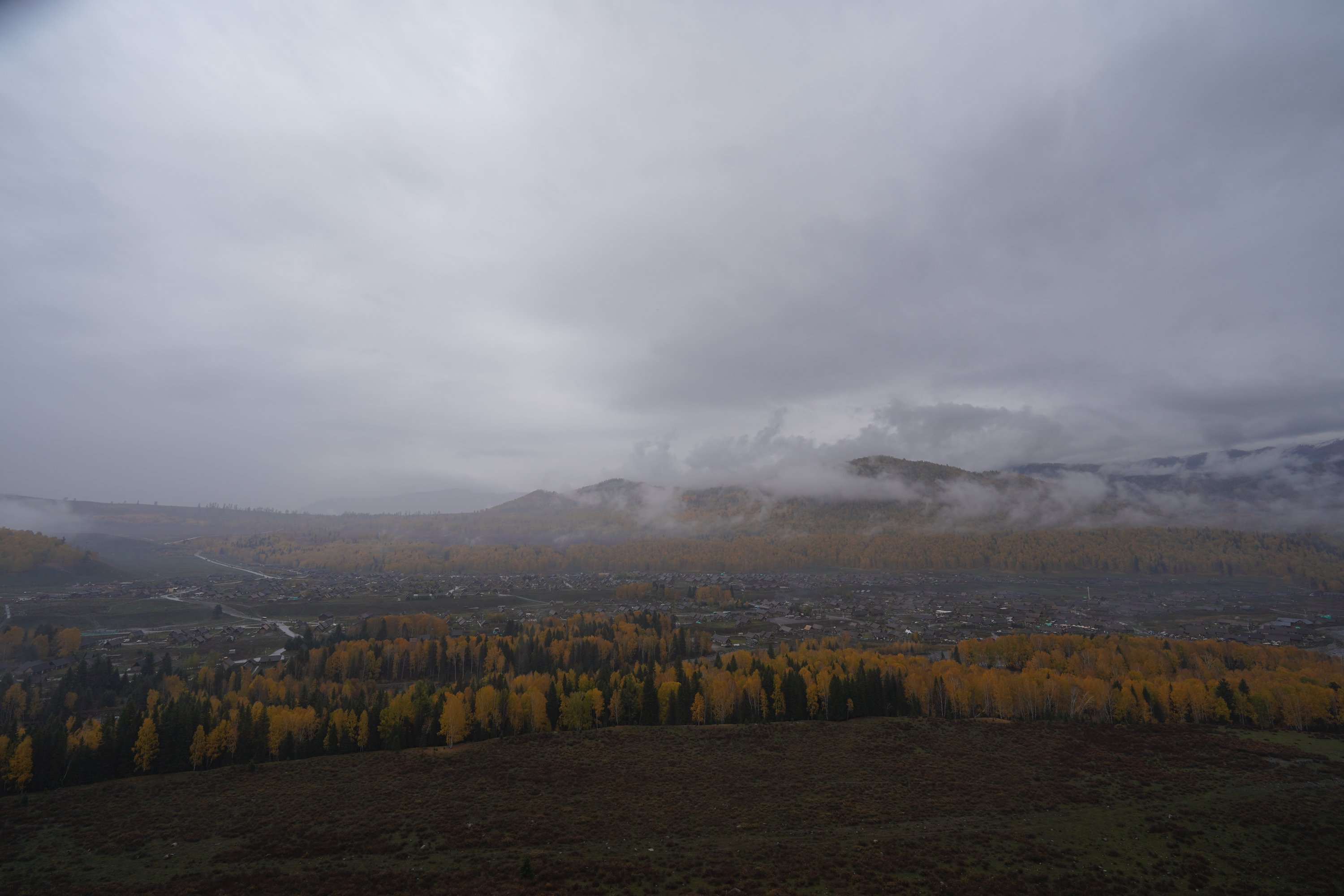 坐大巴去禾木村的路上就开始下雨了,布豪。